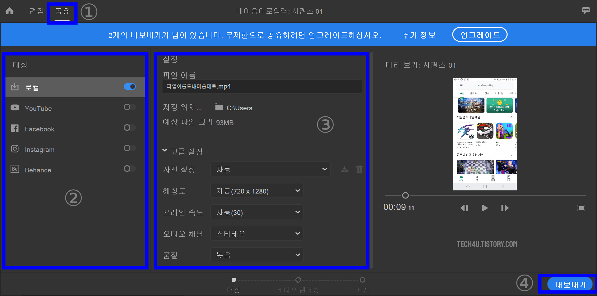 컴퓨터에 저장을 할 수도 있고, 소셜에 바로 업로드할 수도 있습니다.