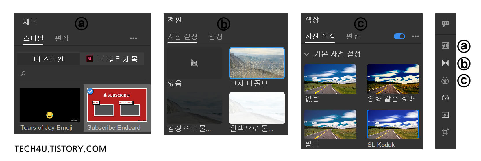 ⓒ 영상 화면에 효과를 넣는 기능입니다.