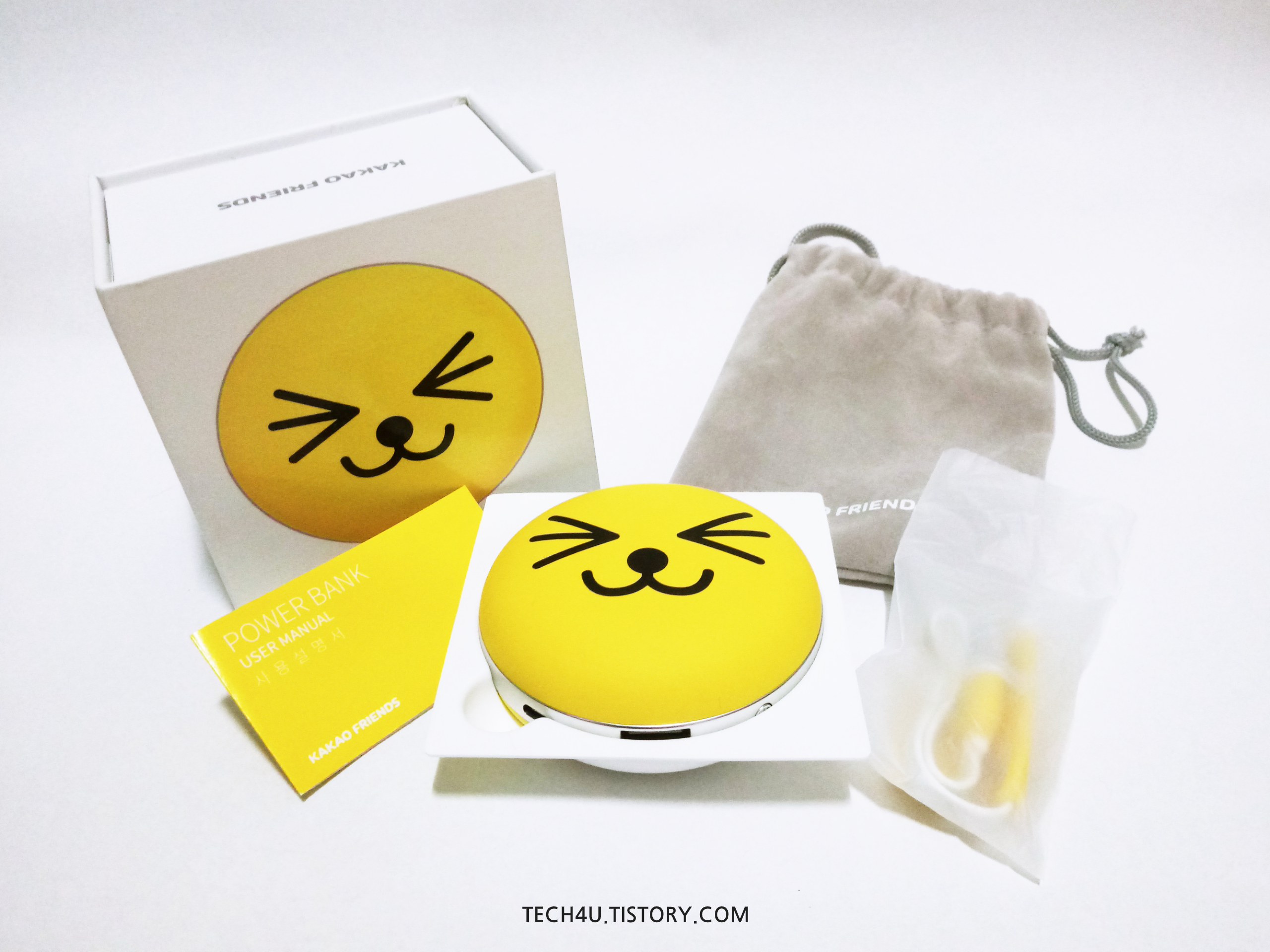 아이쿠 귀여워라! 네, 저 단순한 선 몇 개로 그려놓은 무지 얼굴에 마음이 뺏겼습니다. 하하. 고급지고 실용적인 박스 케이스 안에 배터리 본품과 충전 케이블, 보관 파우치 그리고 사용 설명서가 들어있습니다.