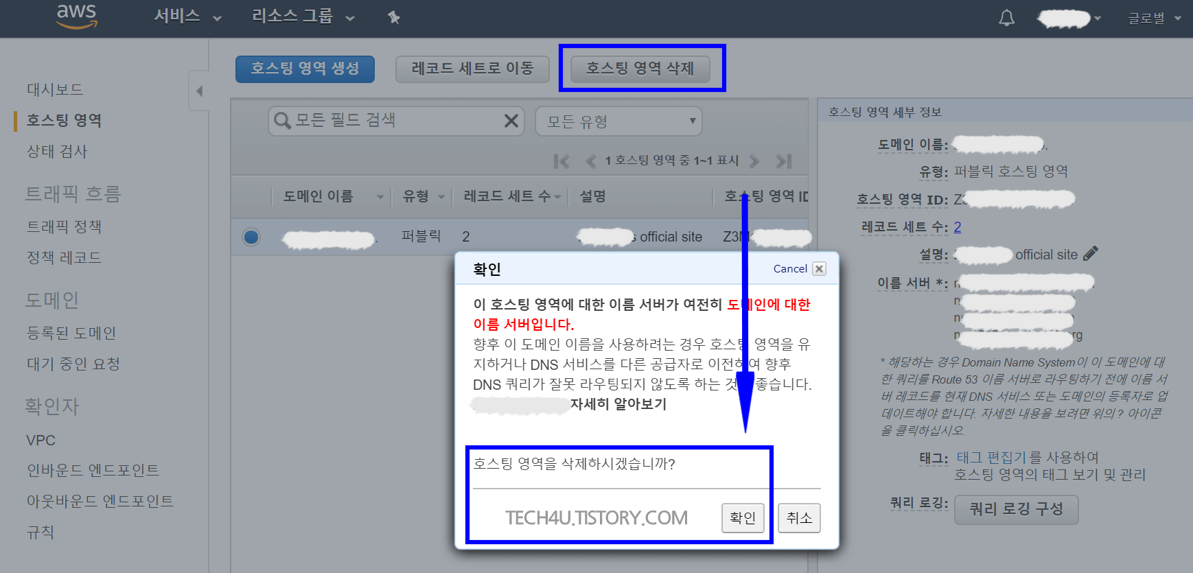 AWS Route 53 삭제 해지하는 방법