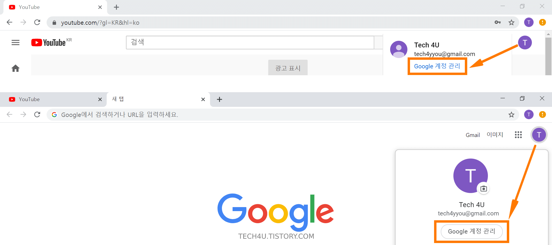 위 예시 화면이 바로 구글 계정 관리 화면입니다.