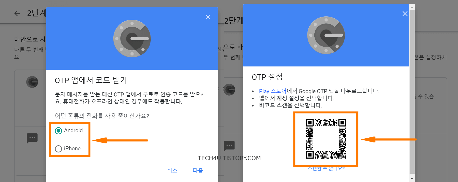 스마트폰(휴대전화)에 구글 OTP 앱을 설치해야 합니다.