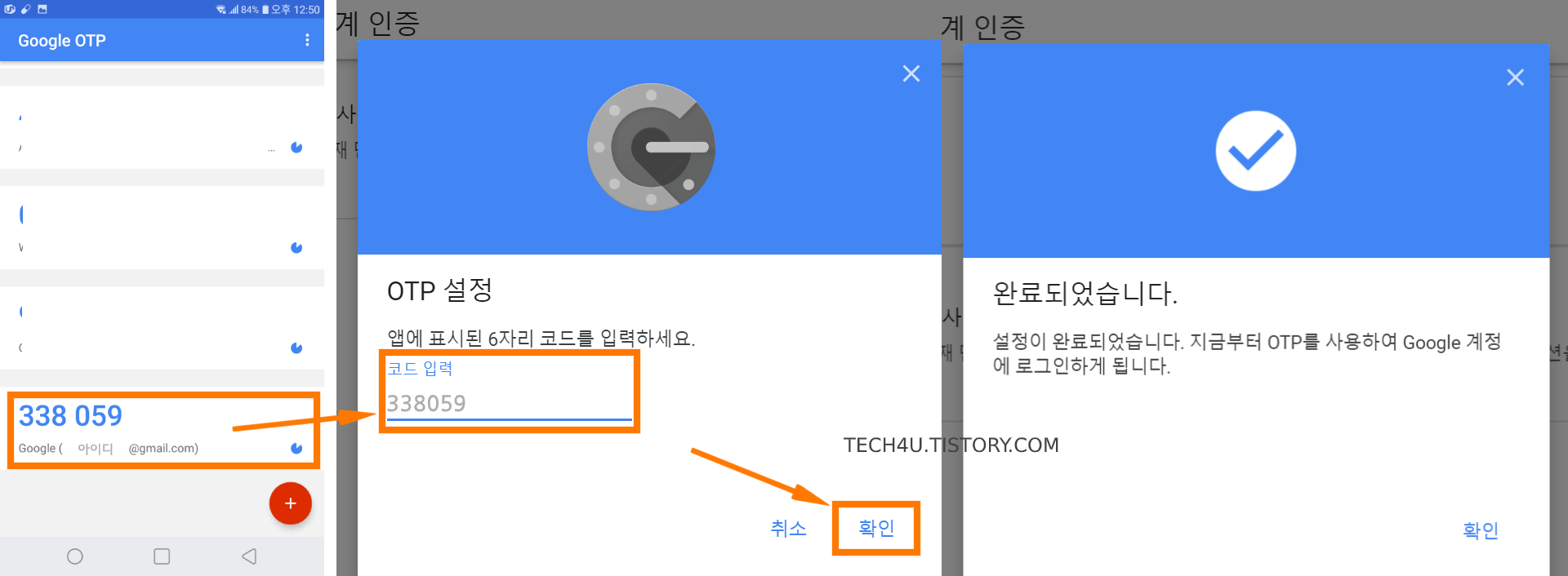 유효 시간 안에 여섯 자리 숫자를 구글 계정 2단계 보안 설정 화면에 입력합니다.
