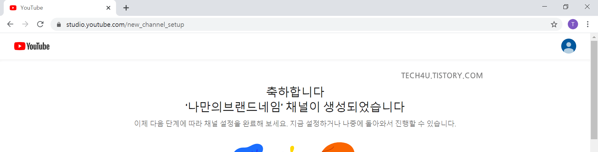 이렇게 손쉽게 유튜브 채널을 만들 수 있습니다. 채널 세부 설정 방법은 다음 글에서 다뤄보도록 하겠습니다.