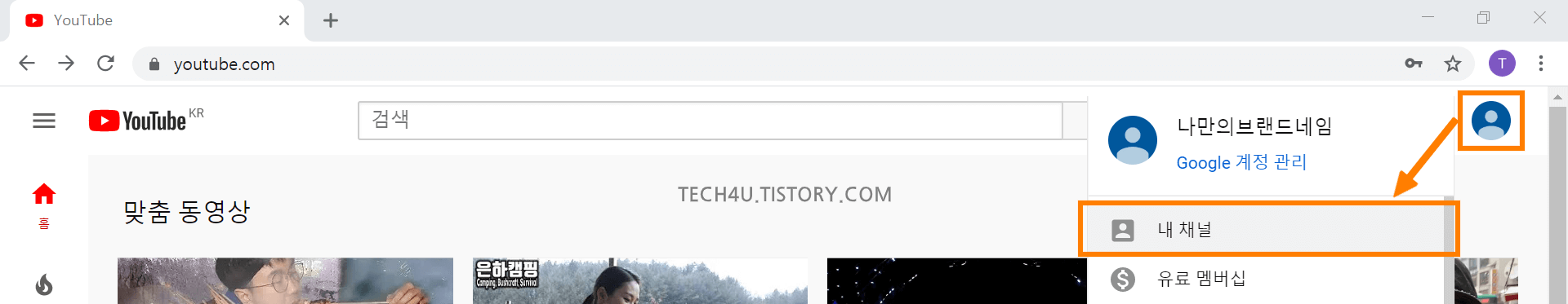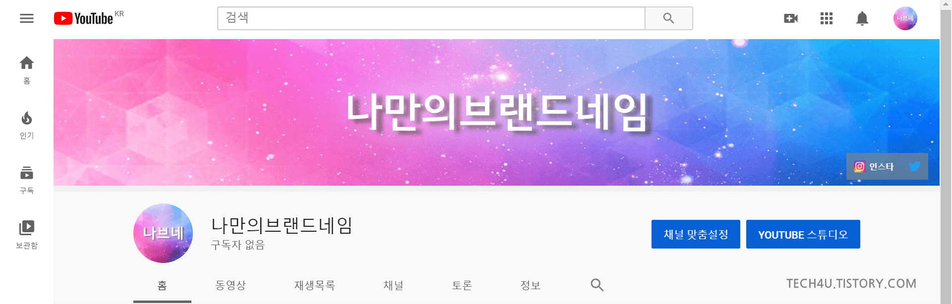 내 채널 페이지로 이동한 모습입니다.