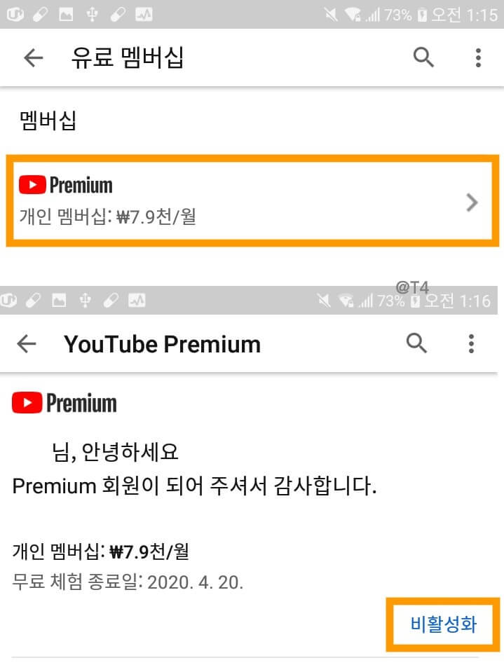 유튜브프리미엄해지 방법을 스마트폰을 이용하여 해지하는 과정을 담았습니다.