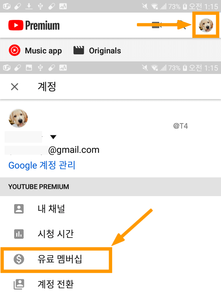 유튜브 프리미엄에 가입된 정보가 나와있습니다.