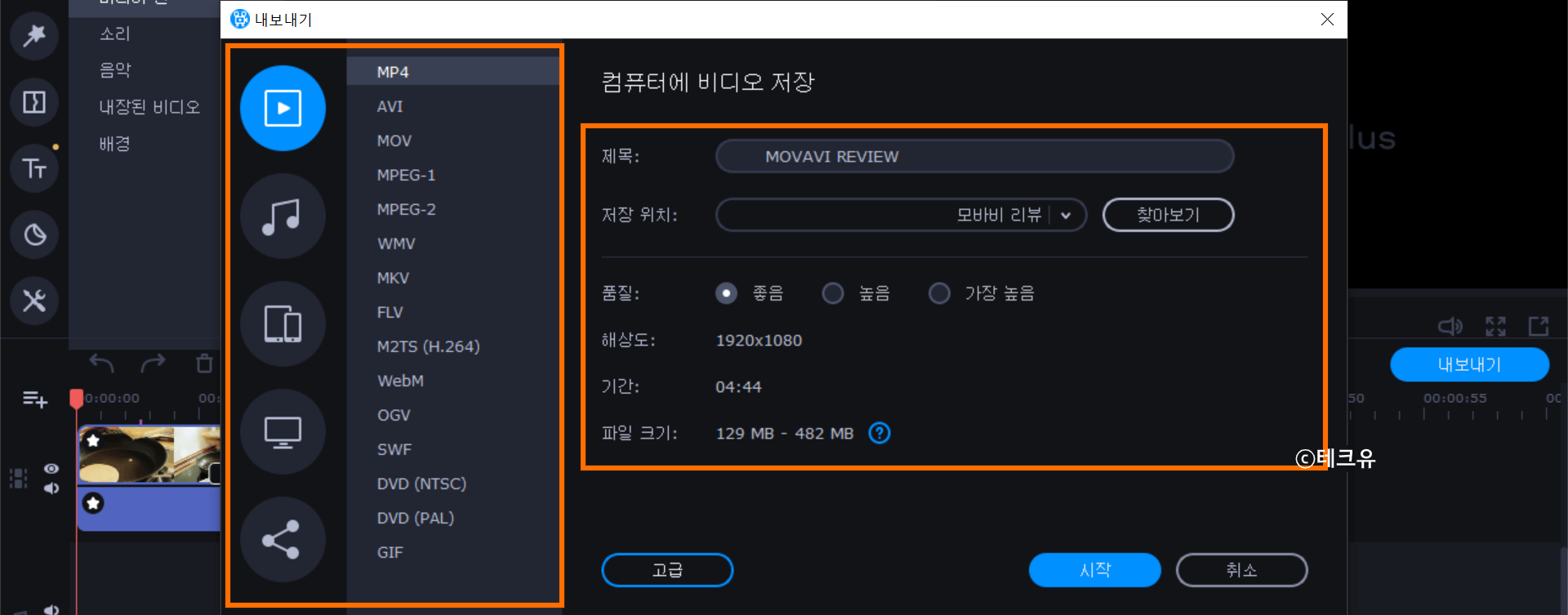 영상을 모두 편집한 뒤 내보내기를 하면, 최종 저장될 파일의 설정을 선택할 수 있습니다. 많은 옵션이 준비되어 있습니다. 편집한 완성본 영상을 추출해 보았습니다.