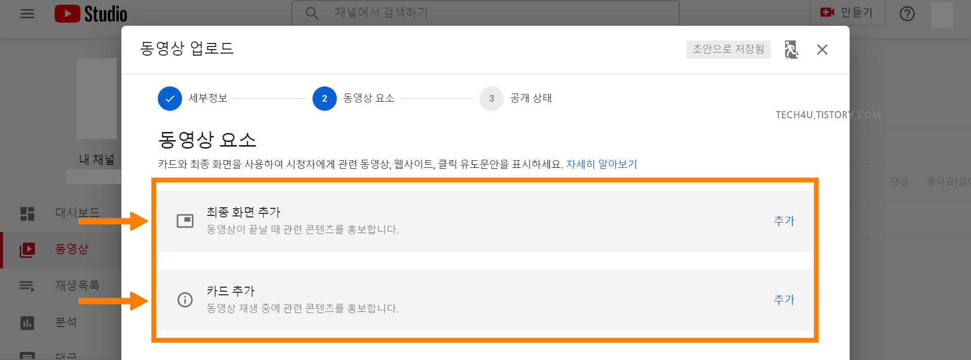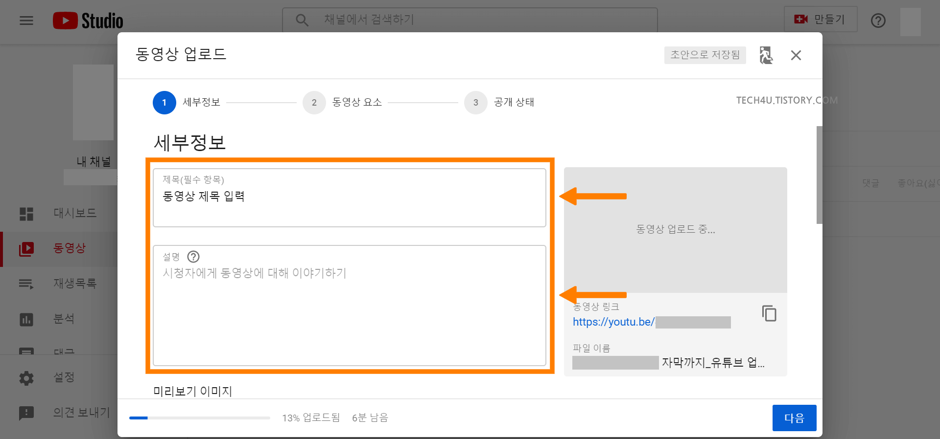 영상이 완전히 업로드 되는 동안 시청자에게 보여질 정보들을 입력해 줍니다.
