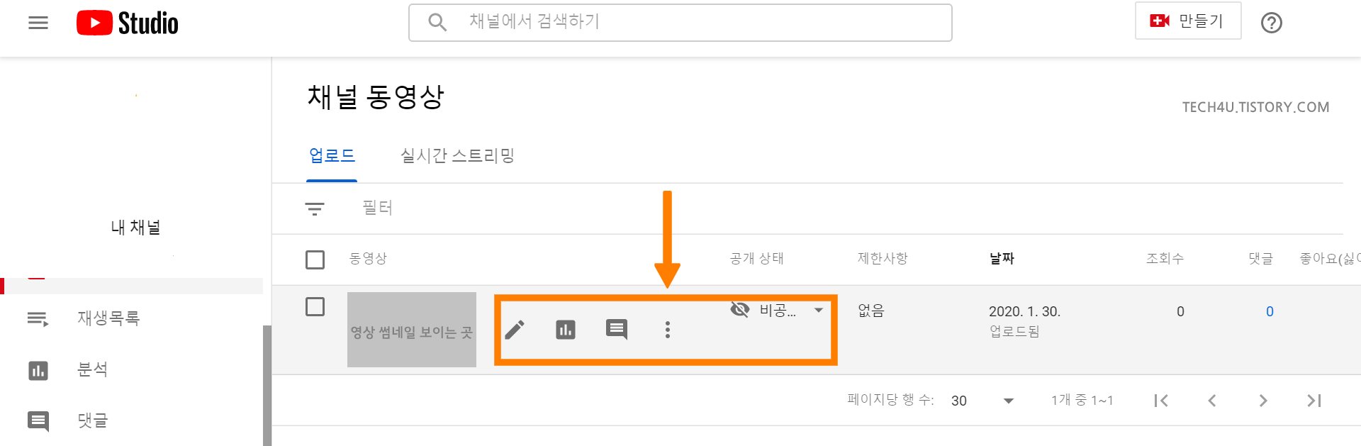 내가 업로드한 동영상 내역을 확인할 수 있는데요.