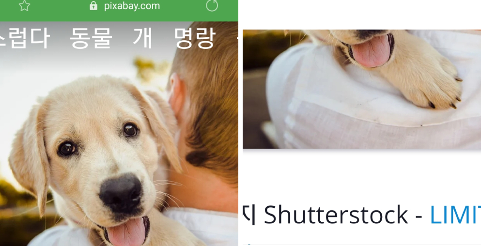 혹시 다른 이미지도 이렇게 보일까 싶어서 다른 사진으로 테스트를 해 보았어요. 무료이미지 공유사이트 픽사베이에서 강아지 사진을 검색해 보았답니다. 확인해 본 결과, 유튜브에서 본 현상은 나타나지 않았어요. 사진과 글자 텍스트가 깨지지 않고 잘 보인답니다. 그런데, 장시간 유튜브 영상을 시청하는 등 스마트폰을 오랫동안 쳐다봐야 하는 일은 되도록이면 피하는 것이 좋을 것 같아요.
