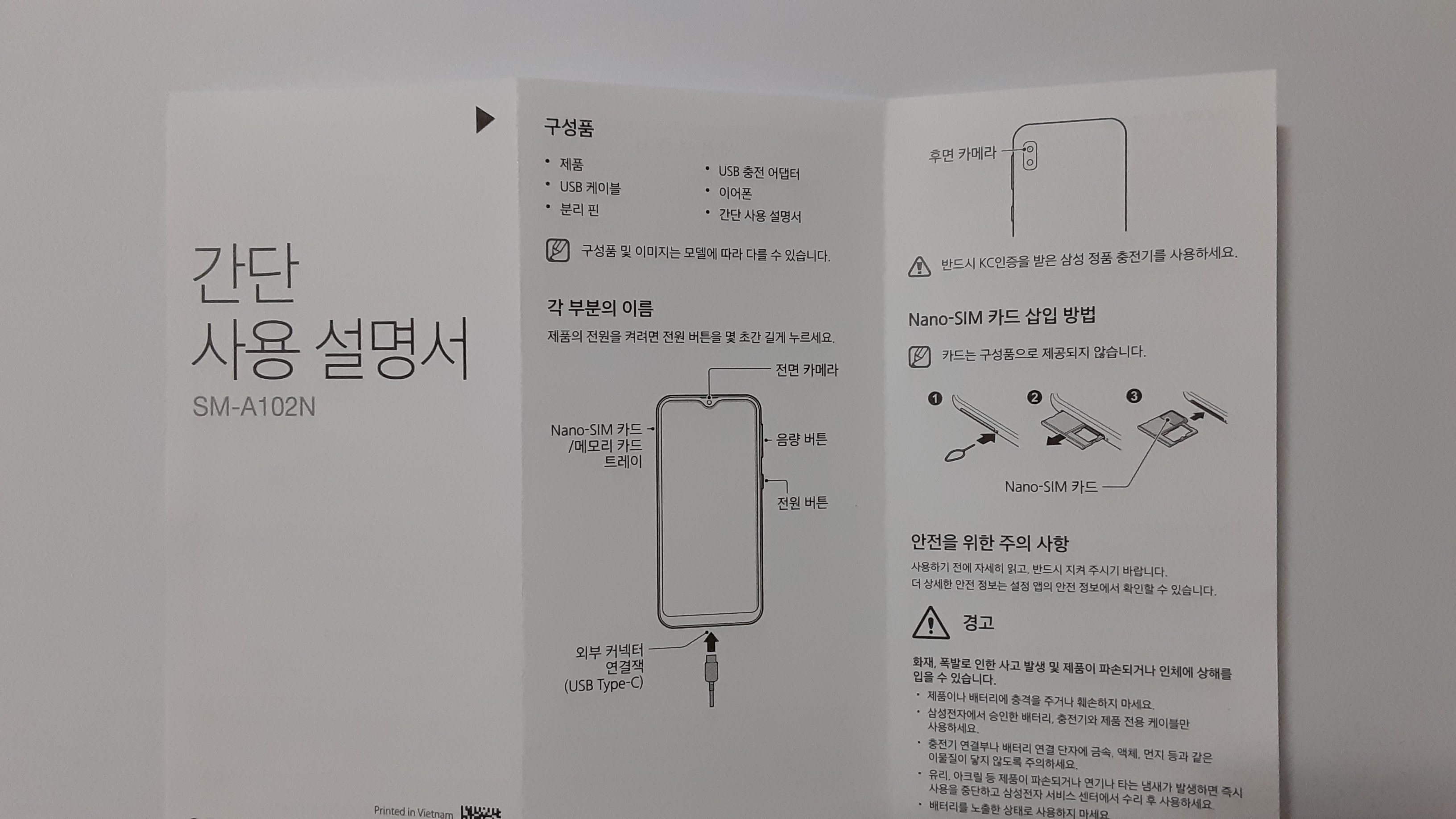 갤럭시A10e가 들어있는 상자는 이렇게 생겼답니다. 요즘은 스마트폰 가격에 차이가 난다고 포장이 엄청 다르다거나 하지는 않는 것 같아요. 예전에는 스마트폰 상자의 재질이나 두께 등에 신경을 많이 썼다는 느낌을 받았는데, 요즘 나오는 스마트폰들은 그런 불필요한 요소를 줄이려는 추세인 것 같아요. 이런 곳에서 비용을 줄여야 더욱 좋은 가성비 스마트폰이 나올 것이니까요. 실속 있게 출시된 갤럭시A10e랍니다.